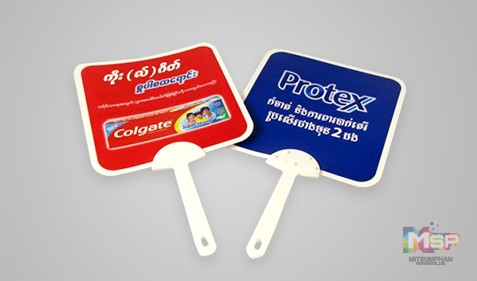 หากต้องการให้พัดมีสีที่เป็นเอกลักษณ์ของแบรนด์ เช่นพัดของคอลเกตและโพรเทคส์ที่มีสีสดชัดสะดุดตา มองแล้วทราบในทันทีว่าเป็นแบรนด์อะไร ทำได้หลากหลายภาษาไม่เพียงแค่ภาษาไทยกับภาษาอังกฤษ และแน่นอนว่าต้องผลิตสินค้าจำนวนมากแต่ยังคงคุณภาพของสินค้าไว้ไม่เปลี่ยนแปลงเพื่อแจกเป็นของสมนาคุณคู่กับสินค้าของทั้งสองแบรนด์ ทางเรารับรองว่าทั้งการออกแบบและการผลิตพัดนี้จะไม่ทำให้เกิดปัญหาแต่หากสร้างให้เกิดการจดจำแบรนด์มากขึ้น