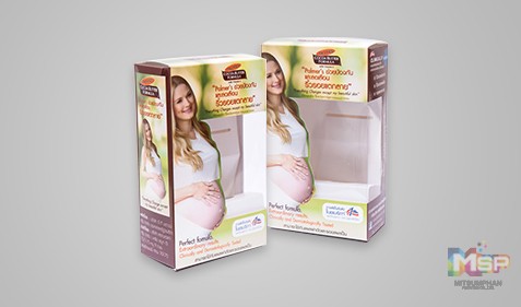 กล่อง Palmer's Cocoa Butter Formula มีภาพจริงที่ถูกจัดวางไว้อย่างดี การพิมพ์ประกอบกับเทคนิคพิเศษที่เราทำได้ไม่ว่าจะเป็นการไดคัท ทำให้เห็นผลิตภัณฑ์ในกล่อง ปะหน้าพลาสติกใสรับรองงานคุณภาพด้วยทีมงานมากฝีมือ จนมีกล่องสวย ๆ แบบ Palmer's Cocoa Butter Formula
